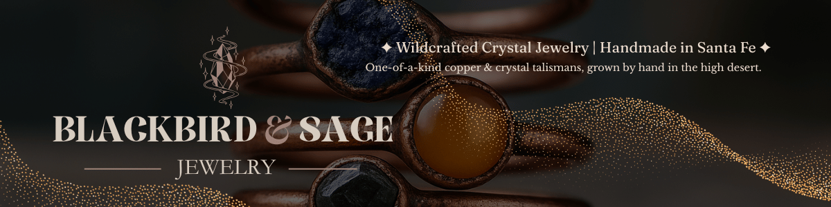 A SANCTUARY OF STONE METAL & MEANING A place where ancient Earth energy meets modern artistry. Founded in 2016 by metalsmith and electroformer Marie Tengren-Knight, this soulful jewelry brand specializes in organic, wild-crafted crystal jewelry inspired by nature’s raw beauty and ancient wisdom. Designed for rebels, mystics, & wild bohemian spirits, Blackbird & Sage Jewelry isn’t just adornment—it’s a way to express your soul, honor your individuality, and carry the transformative power of the Earth with you. From my home-based studio in the heart of Santa Fe to you...